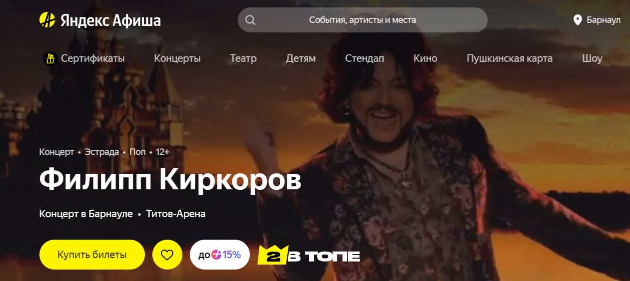 Филипп Киркоров выступит в Барнауле с масштабным шоу.