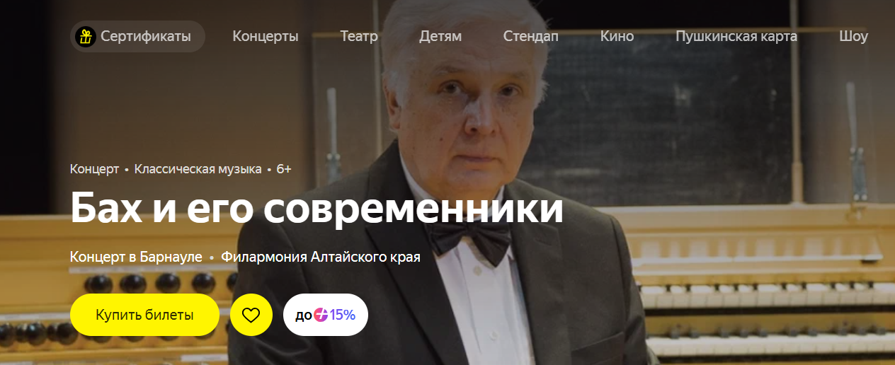 7 марта в Алтайской филармонии состоится концерт «Бах и его современники» (6+). Выступит заслуженный артист России Александр Фисейский. Начало запланировано на 17:00, стоимость билетов — от 400 до 1000 рублей.
