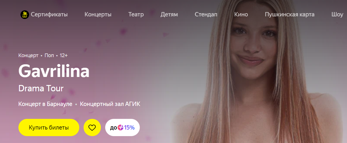 9 марта в концертном зале АГИК выступит Юля Гаврилина (12+). Певица, телеведущая и актриса, чья аудитория превышает 27 миллионов подписчиков, представит сольную программу. Концерт начнется в 19:00, билеты стоят от 1500 до 5000 рублей.