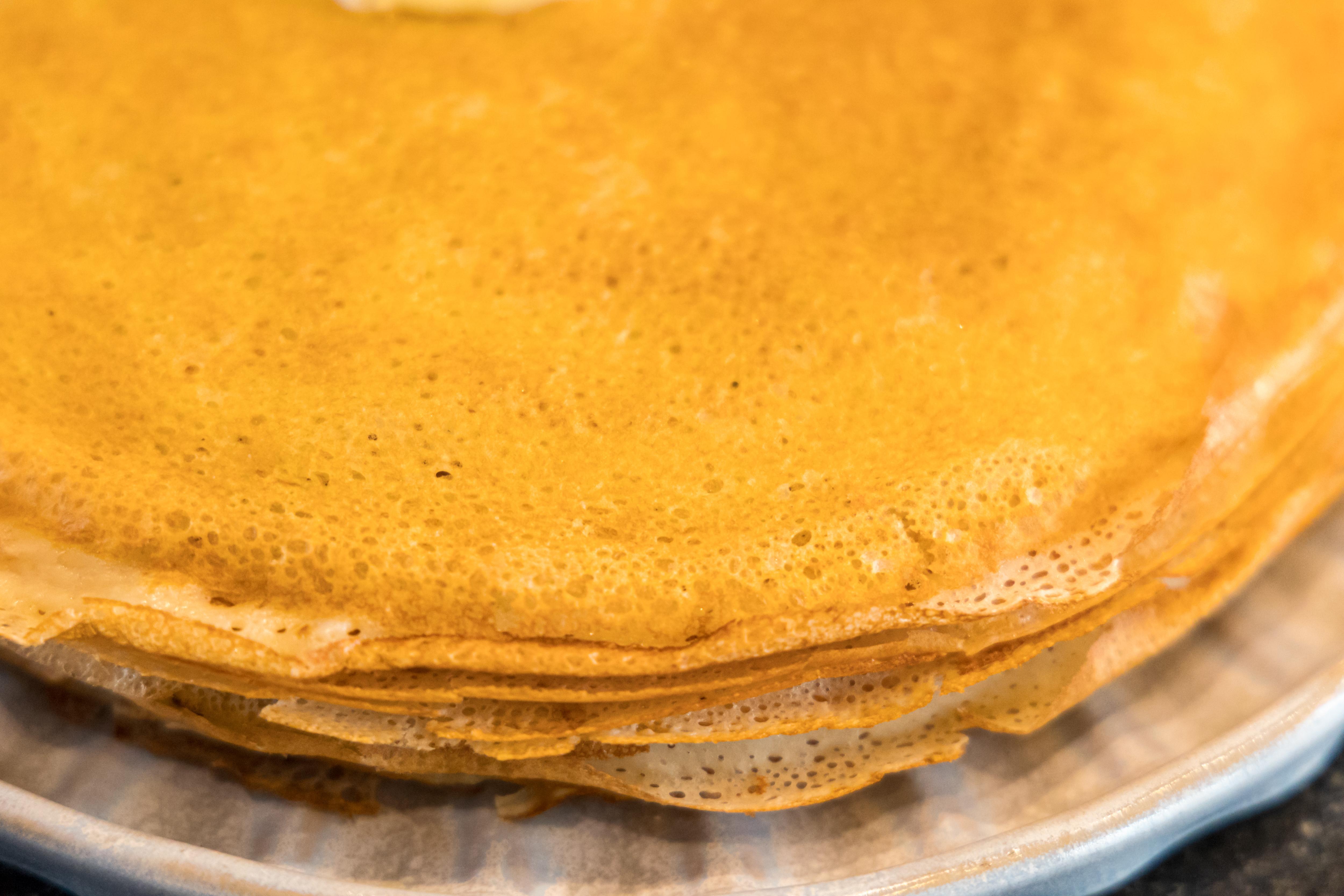 Эти блинчики отличаются воздушностью и пышностью, напоминая тонкие панкейки. Их жарят на сухой сковороде, что делает блюдо менее калорийным.