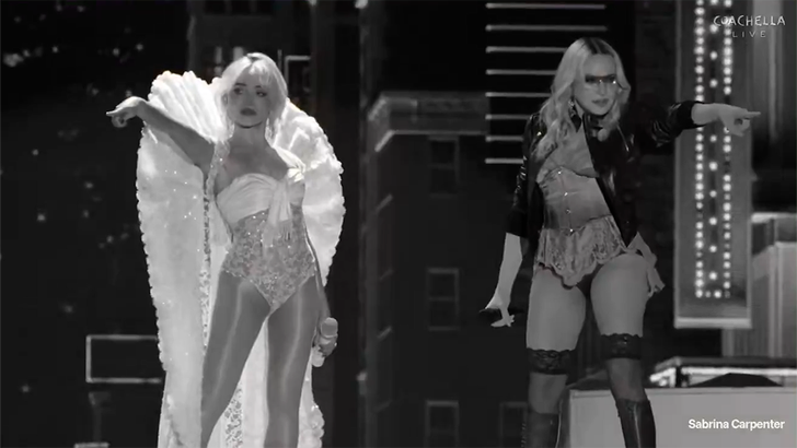 На сцене Мадонна зажгла в сексуальном лавандовом боди с оборками и чулках до бедра. Она даже призналась фанатам, что надела тот же корсет, ботинки и куртку Gucci, что и в прошлый раз. Ранее певица уже выступала на Coachella: в 2015 году с Drake и в 2006 году как хедлайнер Sahara Tent. Sabrina, в свою очередь, блистала в белом кружевном боди, которое перекликалось с её чёрным нарядом прошлых выходных.