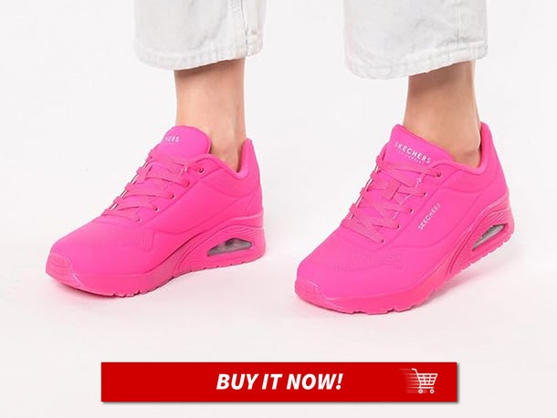 Заявите о себе с кроссовками Skechers Street Uno. Эти яркие и смелые туфли представлены в различных сочных оттенках, включая горячий розовый, фиолетовый и лаймовый. Хотя они являются модным акцентом, они также обеспечат комфорт благодаря стельке из памяти формы с охлаждающим эффектом и амортизирующей технологии в подошве. По отзывам, обувь очень удобна, долговечна, легка и устойчива к скольжению, представляя отличное соотношение цены и качества.