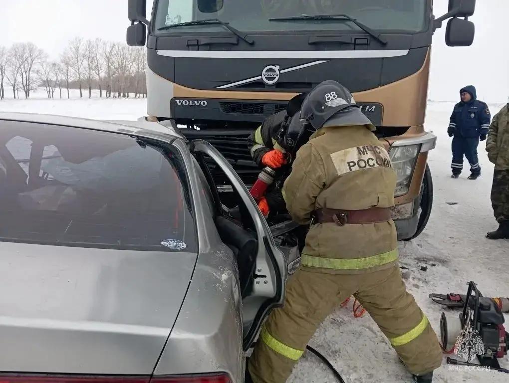 Серьёзное дорожно-транспортное происшествие произошло вечером 5 марта в Алтайском крае. В нём участвовали легковой и грузовой автомобили.