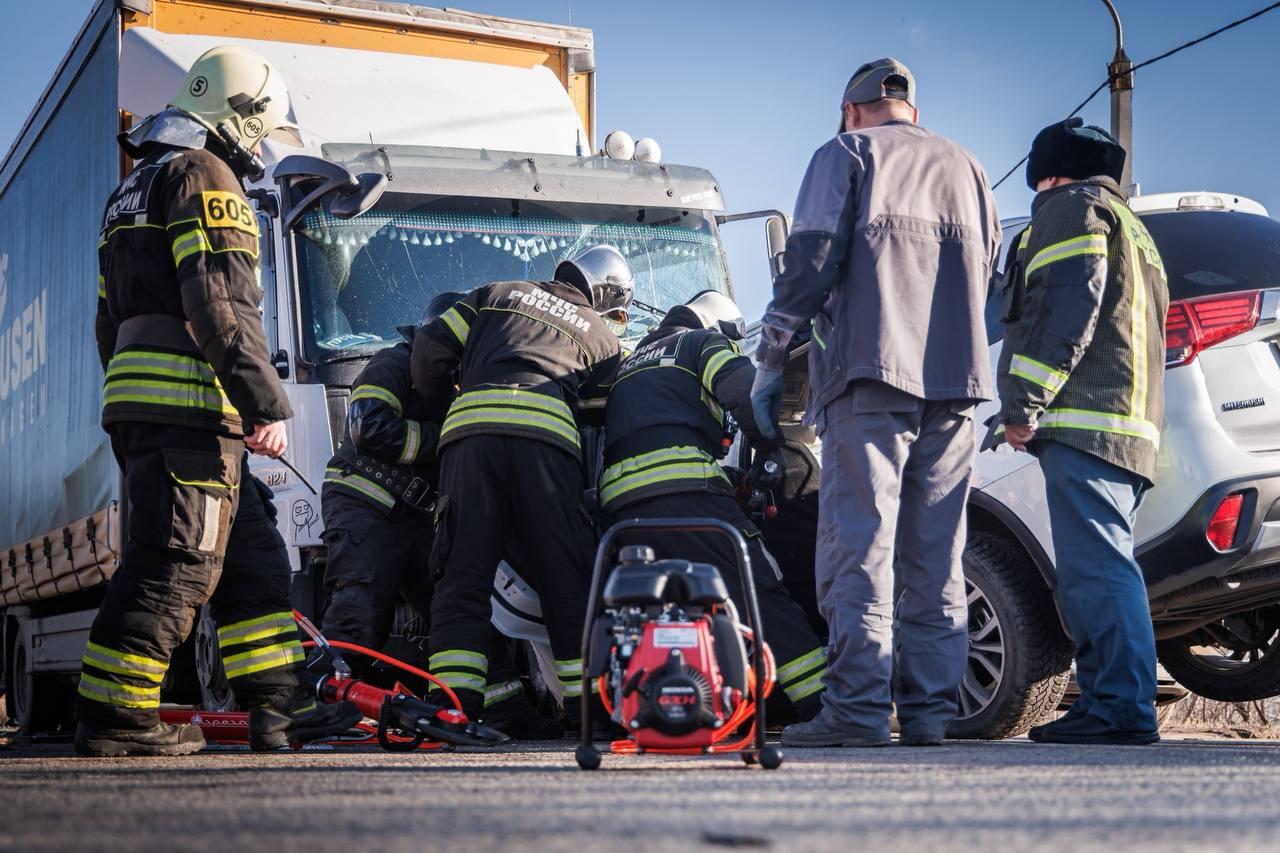 В результате мощного удара водитель легкового автомобиля погиб на месте до приезда экстренных служб. На обнародованных кадрах отчетливо видно, как машина вжата в грузовик, а на месте происшествия в момент съемки работали спасатели.