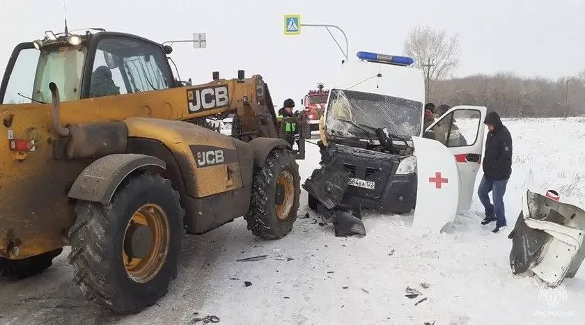 Трактор и скорая столкнулись на Алтае, медику зажало в салоне