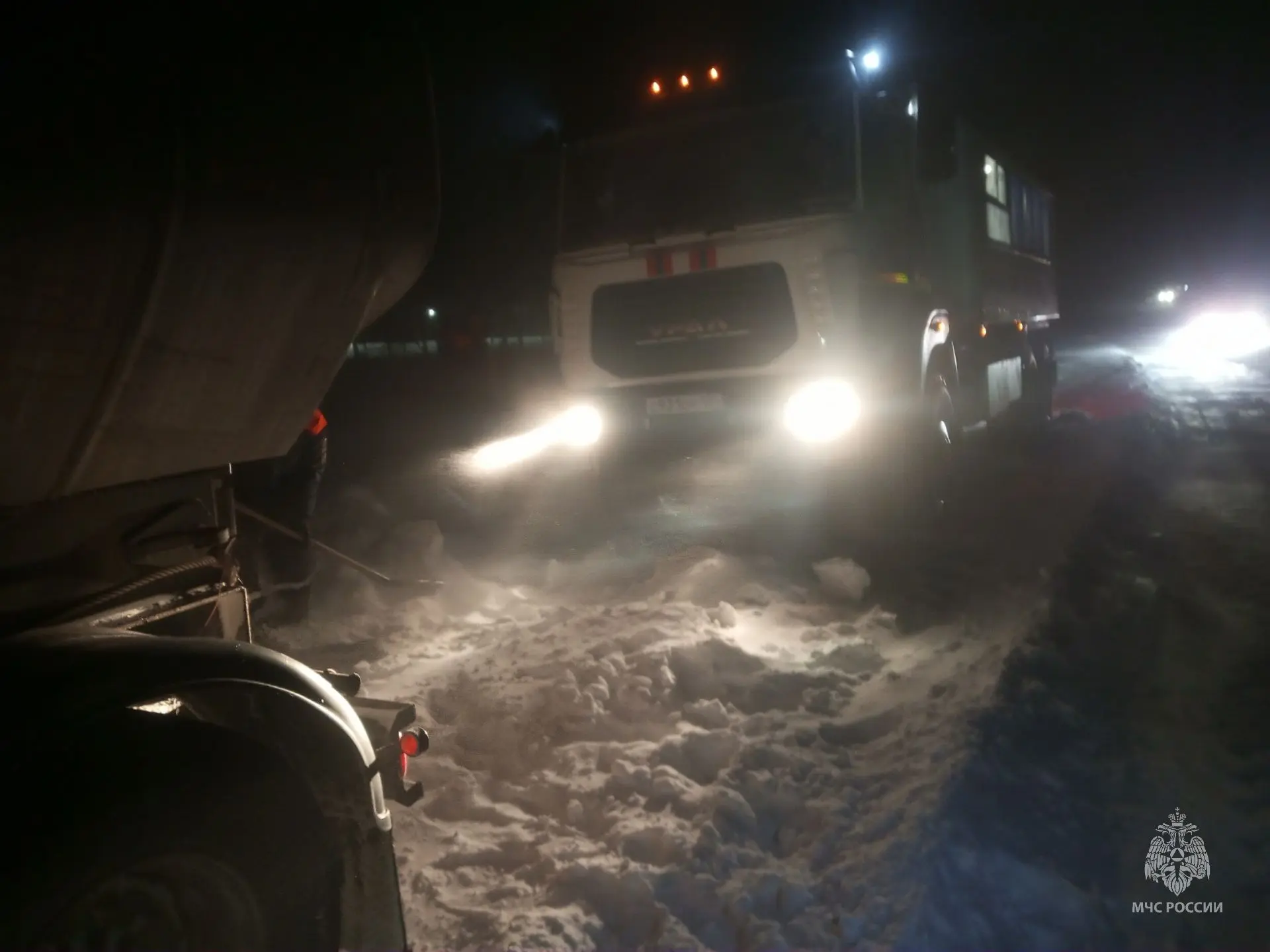 Для помощи привлекли специалистов «Алтайавтодора» и пожарных, что позволило вызволить все транспортные средства из снежного заноса.